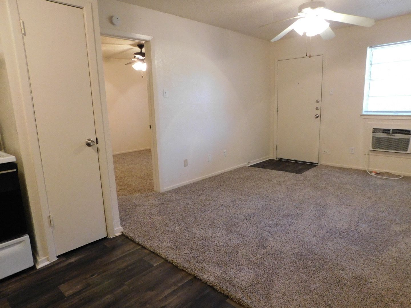 491 square feet. All electric with window unit for heat and air conditioning. Water, sewer, and trash included. Appliances include a refrigerator and stove. On-site laundry facility.
