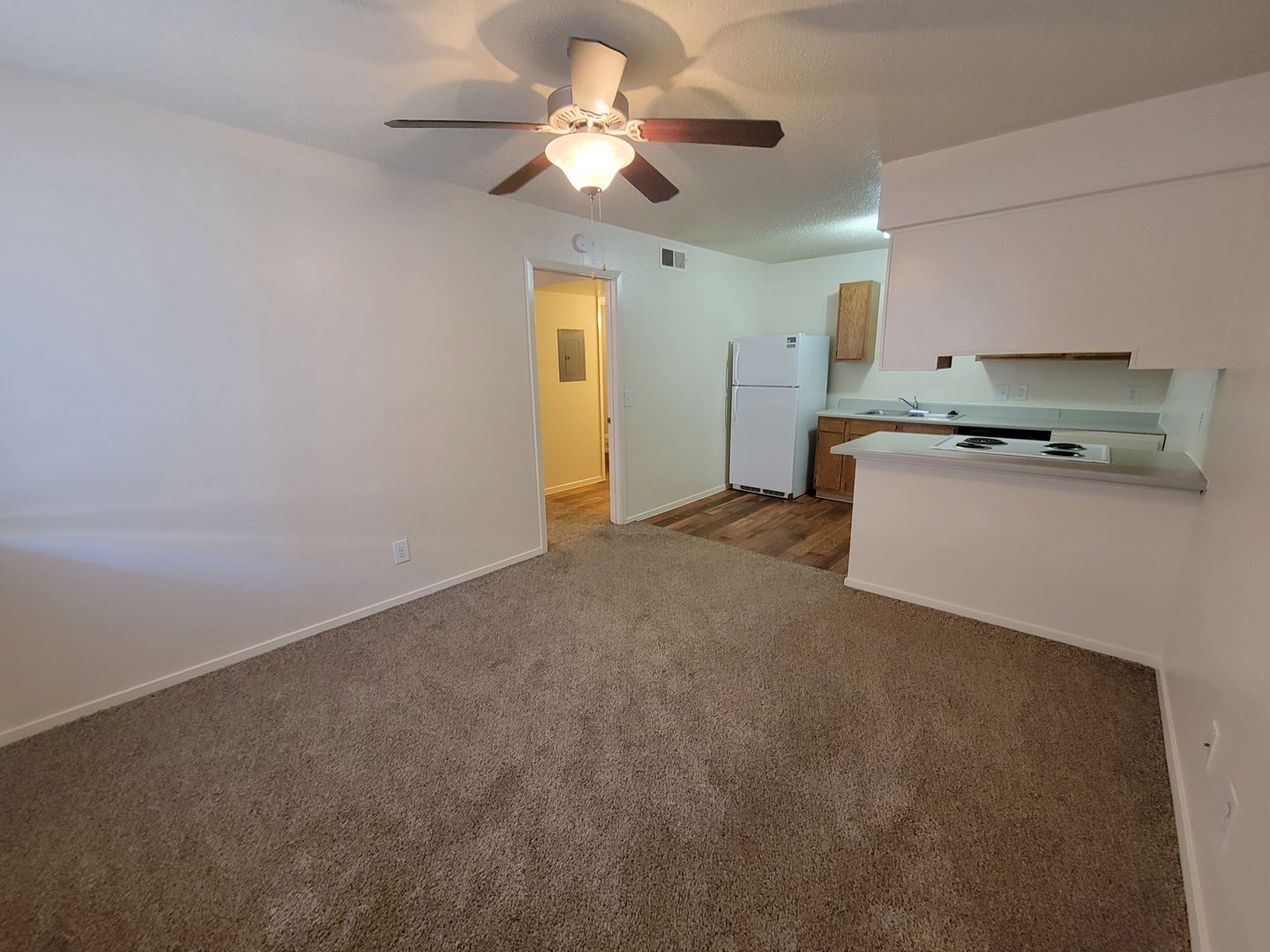 All electric with central heating and air conditioning. 500 square feet. Appliances include a refrigerator, stove, dishwasher, and garbage disposal. Laundry facility available. Water, sewer, and trash included. Tenant pays electricity and cable/internet. Single level building.